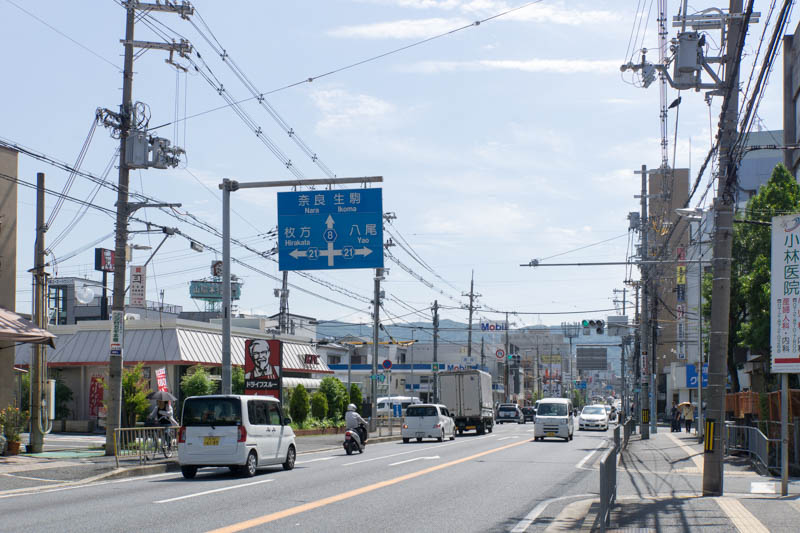 ですが枚方と八尾を結ぶ道路といえばひらパー横から線路沿いに走る府道21号線がお馴染みですし、おそらくちょっとしたフェイクとして府道から国道へ変えられたものなんじゃないでしょうか。