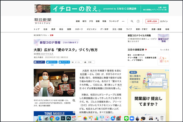 大阪)広がる「愛のマスク」づくり/枚方|朝日新聞DIGITAL