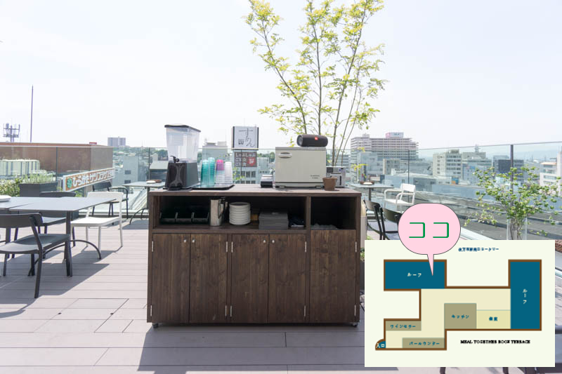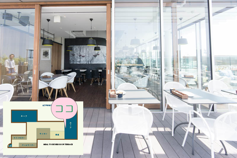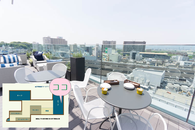 さんぷら座側のルーフテラスに出ます。