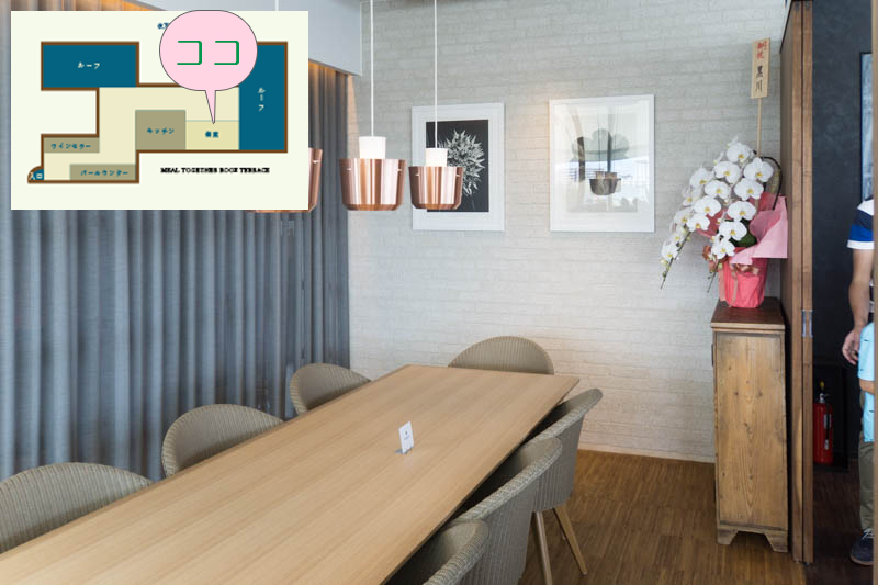 個室の前あたり。