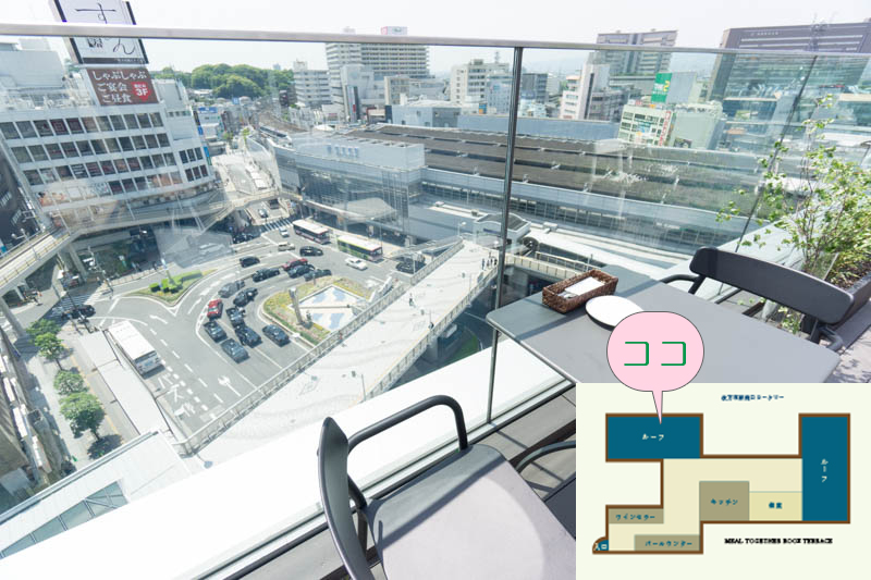 ロータリー側のルーフテラスに出ます。