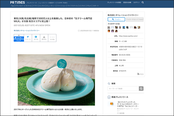 上記リンク先によると、枚方T-SITE4階にあるオリエント珈琲内に生クリーム専門店「ミルク」が出店したということがわかります。