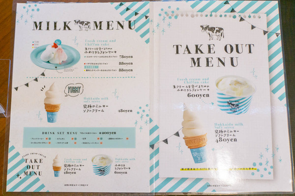 テイクアウトの究極のミルキーソフトクリーム(480円税抜)、生クリームを食べるためのふわとろシフォンケーキ(600円税抜)。
