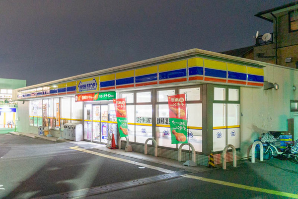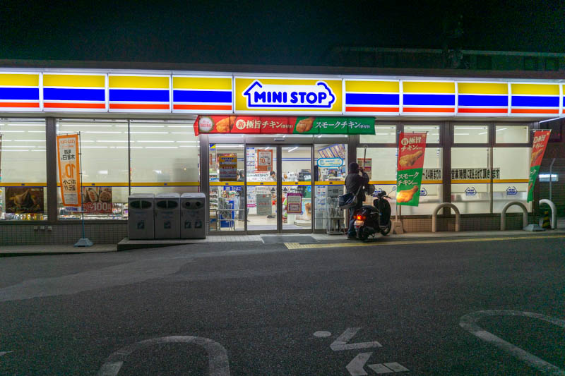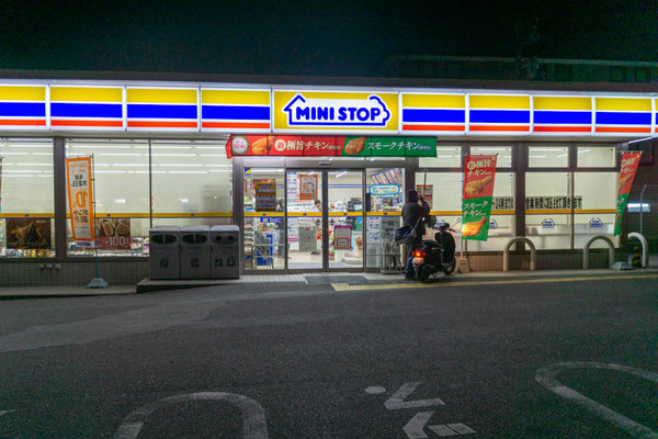 上記写真は営業時間外のミニストップ。看板だけ光を落としているパターンは結構レアなのでは。