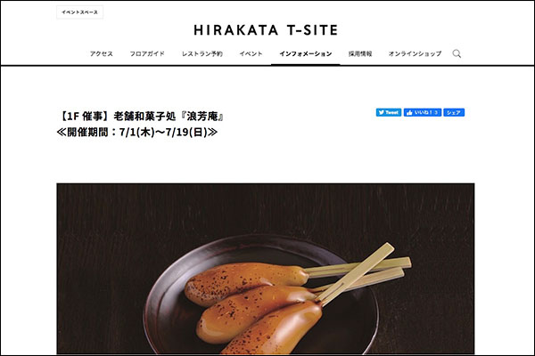 上記リンク先によると、枚方T-SITEに「浪芳庵」が7月1日から19日まで催事出店していることがわかります。