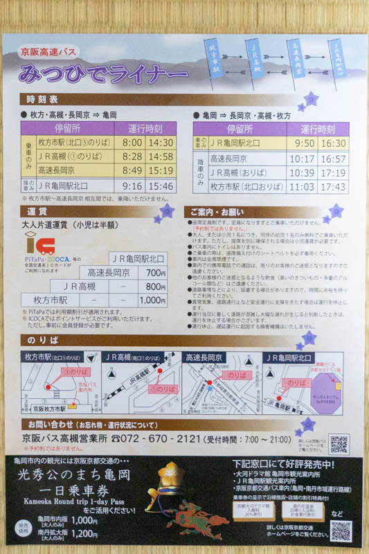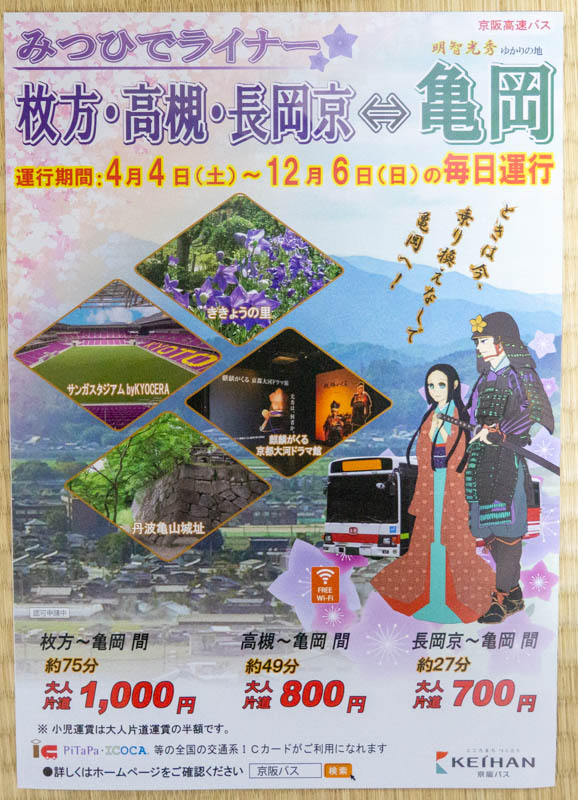 京阪枚方市駅とJR亀岡駅を結ぶ高速バス「みつひでライナー」の運行がはじまっています。
