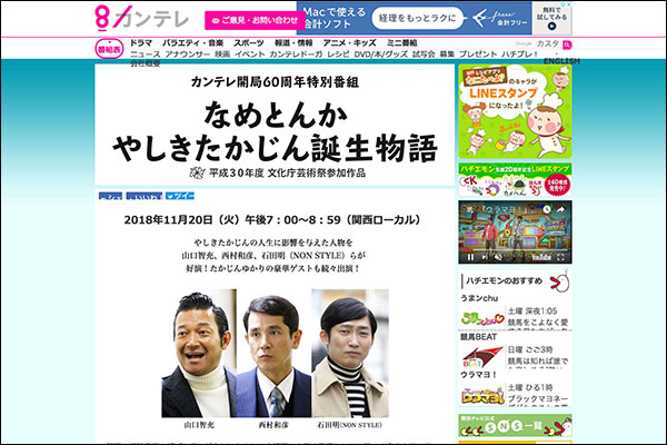 カンテレ開局60周年特別番組 なめとんか やしきたかじん誕生物語 | 関西テレビ放送 カンテレ
