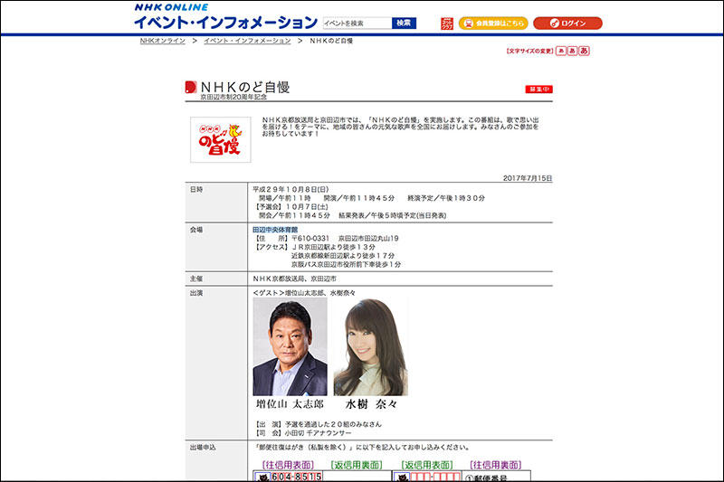 イベント詳細・申込(NHKのど自慢) | イベント・インフォメーション NHK(日本放送協会)