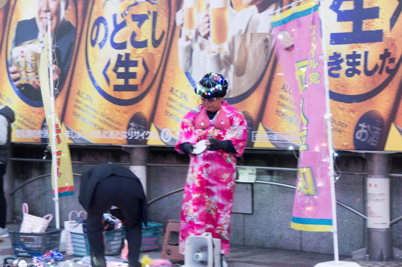 そんなわけで、スクランブル交差点のそばでアピールをはじめた3人。
