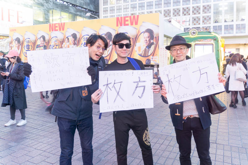 第1弾はタイトルどおり、カズマ@ひらつー企画発案の「渋谷のスクランブル交差点で枚方に住んでた or 住んでる人を探す」というお話。ではどうぞー!