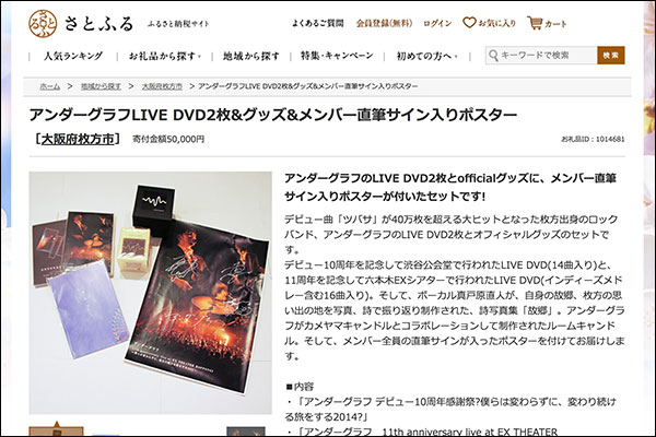 ちなみにアンダーグラフはPR大使就任以外にも、4月1日よりふるさと納税の返礼品にもグッズなどを登録されたそうです。