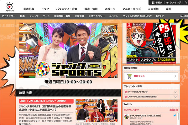 ジャンクSPORTSといえばダウンタウン浜田さんが司会をつとめるスポーツエンターテイメント番組。2000年ごろから放送されているということもあり、みなさんご存知の番組だと思います。