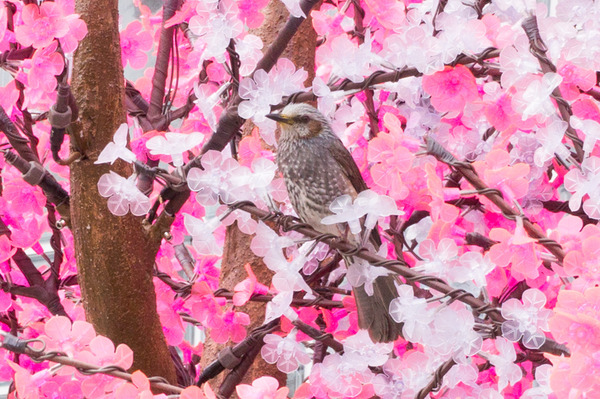 (枚方市周辺の梅の咲き具合より人工の梅と鳥)