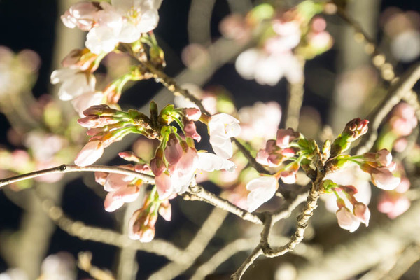 ちなみに遠くから撮影しているので、桜がライトアップされてまるで咲いてる風ですが、
