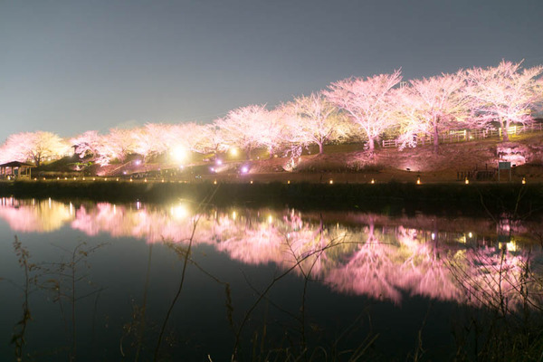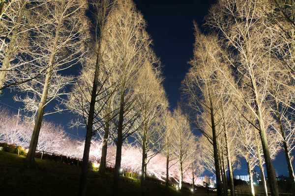 寝屋川の打上緑地で桜が今年もライトアップされています。