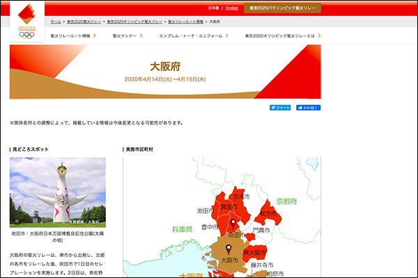 上記リンク先には東京2020オリンピック聖火リレーにおける大阪府のルート概要などが書かれてまし