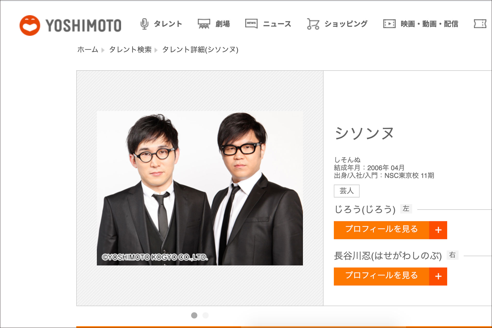 お笑いコンビ「シソンヌ」のじろうさん(画像左)は、長谷川さん(画像右)と主にコントなどをする吉本興業所属のお笑い芸人で、コント日本一を決める『キングオブコント』の2014年王者。