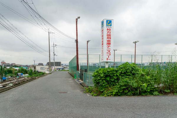 反対方向は細い農道が続いています。真っ直ぐ進んで行くと枚方高校などが。