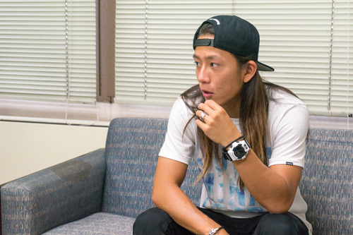 大輝「う〜ん・・・それだと、いかにもめっちゃやってます!って感じになるじゃないですか。それって僕の美学に反するんです。髪は全く染めてなくて、染めてもすぐ色が抜けるし、めんどくさい。今の髪も伸ばそうと思って伸ばしたんじゃなくて、美容院に行く暇がなくて気づいたらなってたって感じで。」