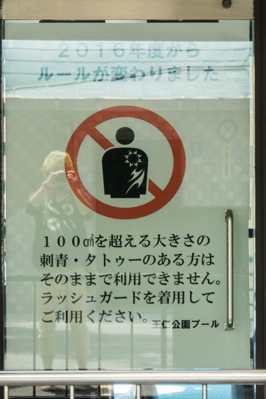今年からルール変更があり、刺青やタトゥーは100平方cmを越える場合は利用できなくなった模様。