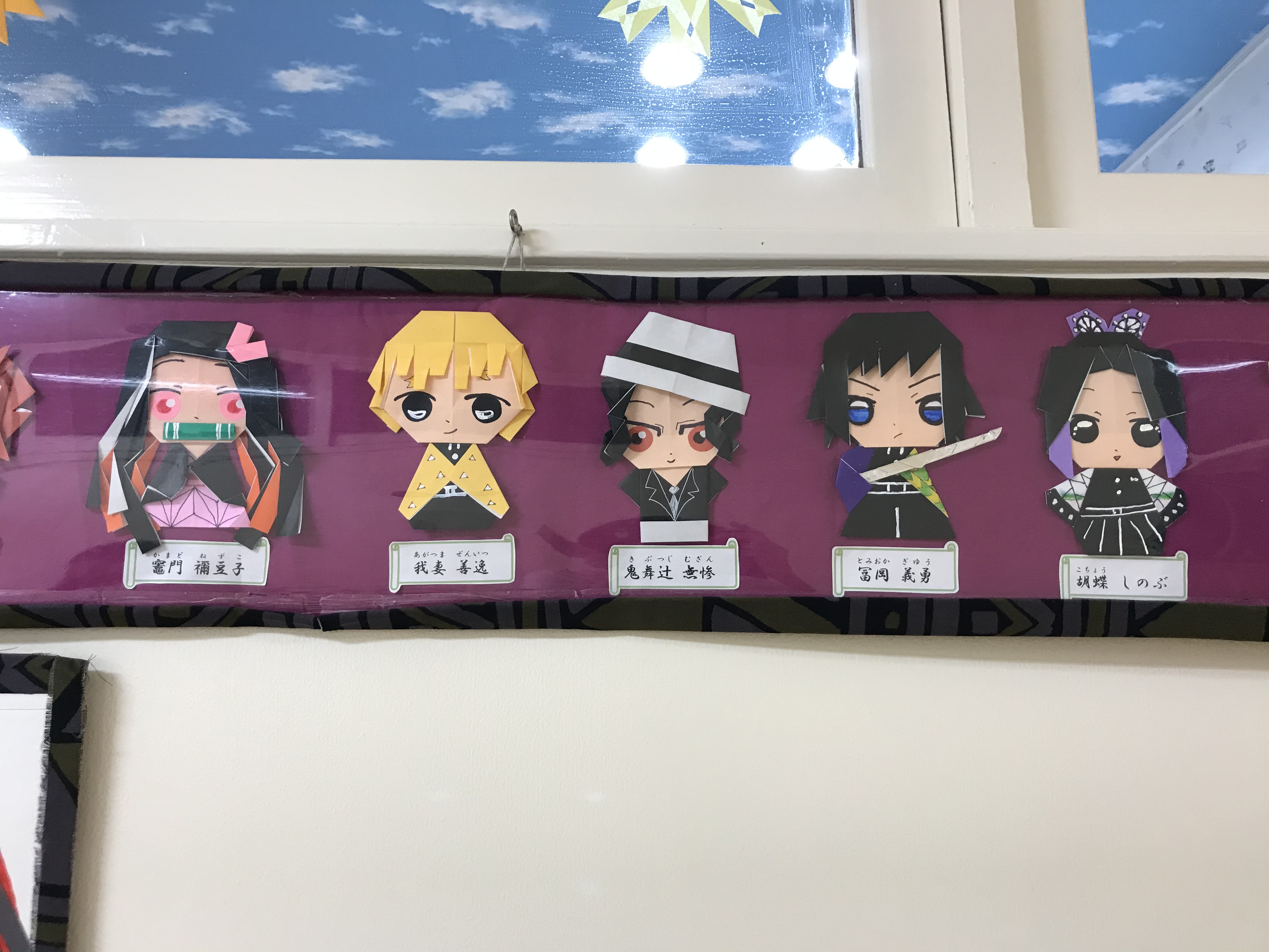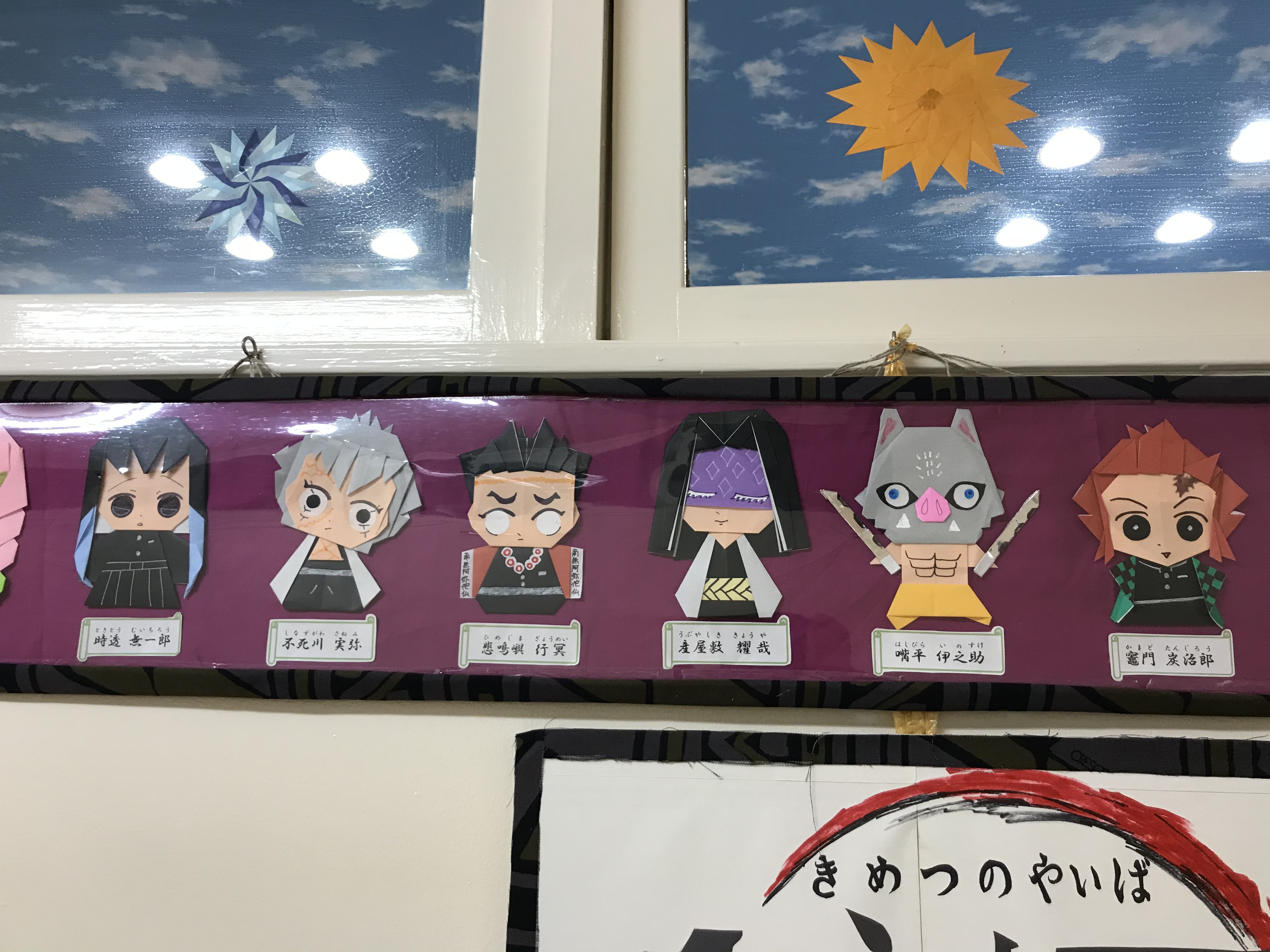 ■香里ケ丘の保坂小児クリニックに折り紙で作った鬼滅のキャラが飾られてる↓