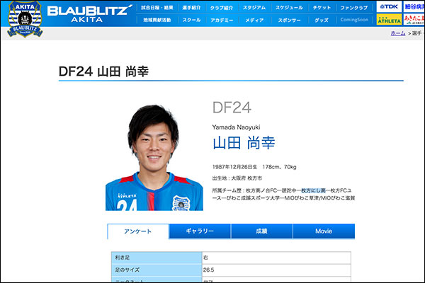 DF24 山田 尚幸 選手・スタッフ紹介 ブラウブリッツ秋田