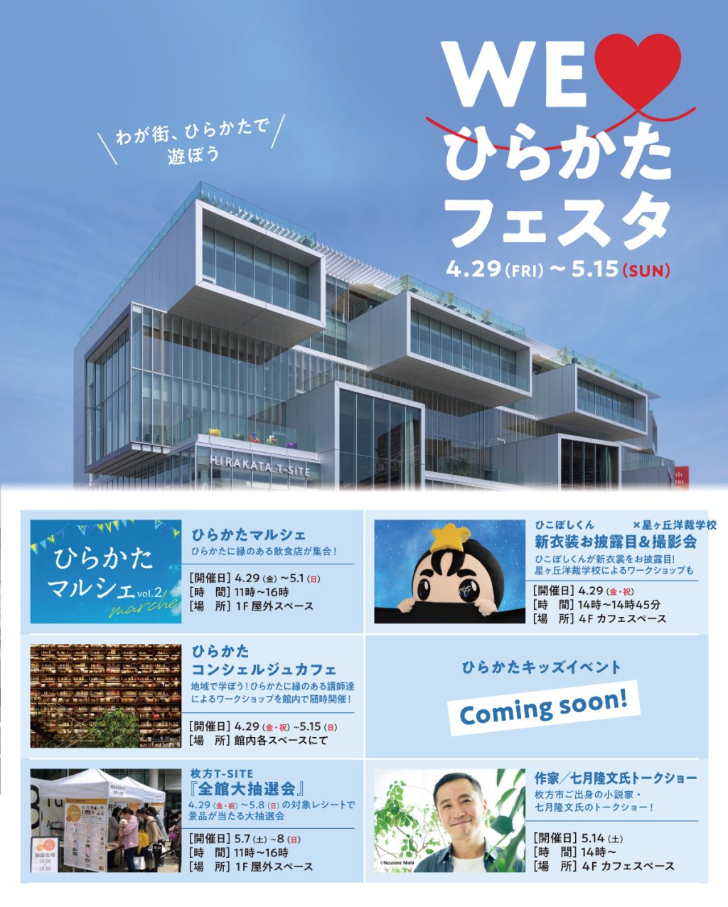 枚方T-SITEにて、飲食店による『ひらかたマルシェvol.2』や枚方に縁のある方のワークショップ、イベントを楽しみましょう!