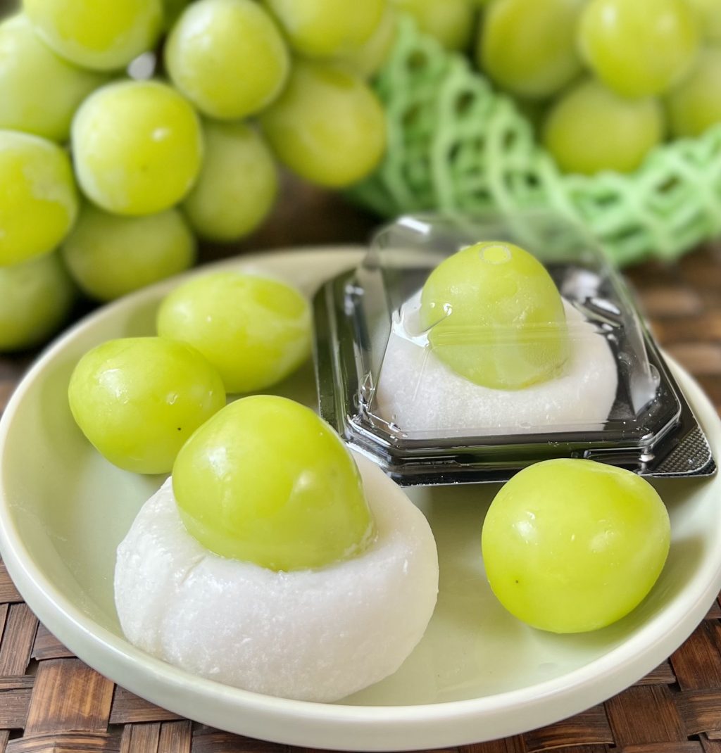 毎年好評のシャインマスカット大福(税込389円)今が旬の美味しい大粒のぶどうを厳選いたしました。今週末にはナガノパープル大福が販売予定!お楽しみに。