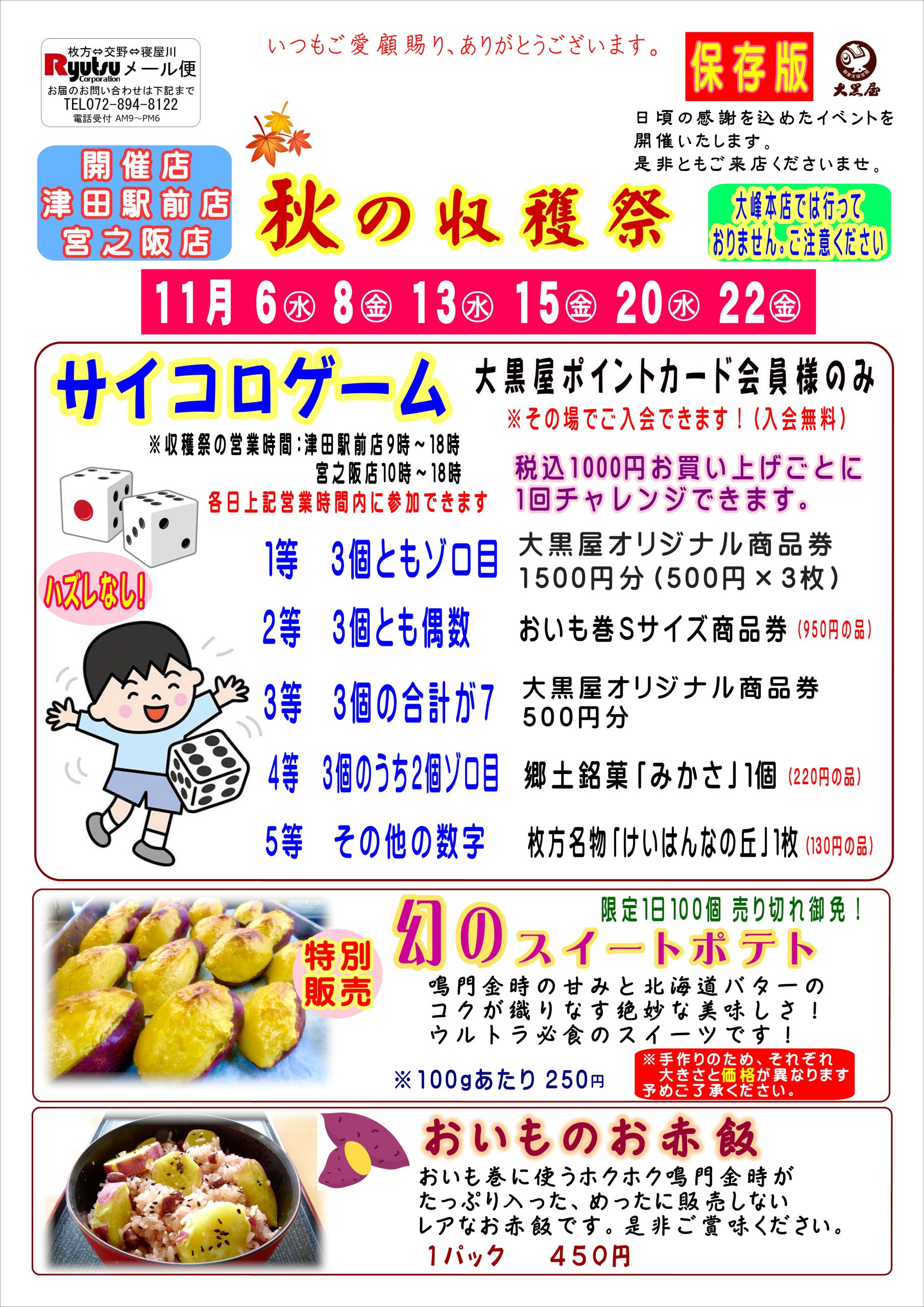 【秋の収穫祭】を、津田駅前店と宮之阪店にて6日間限定、好評開催中♪