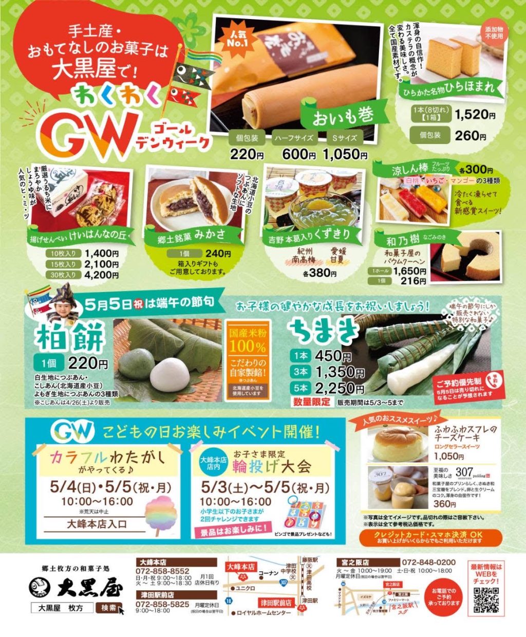 5/5㈪は柏餅とちまきを食べて子どもたちの健康と幸せを願いましょう!
