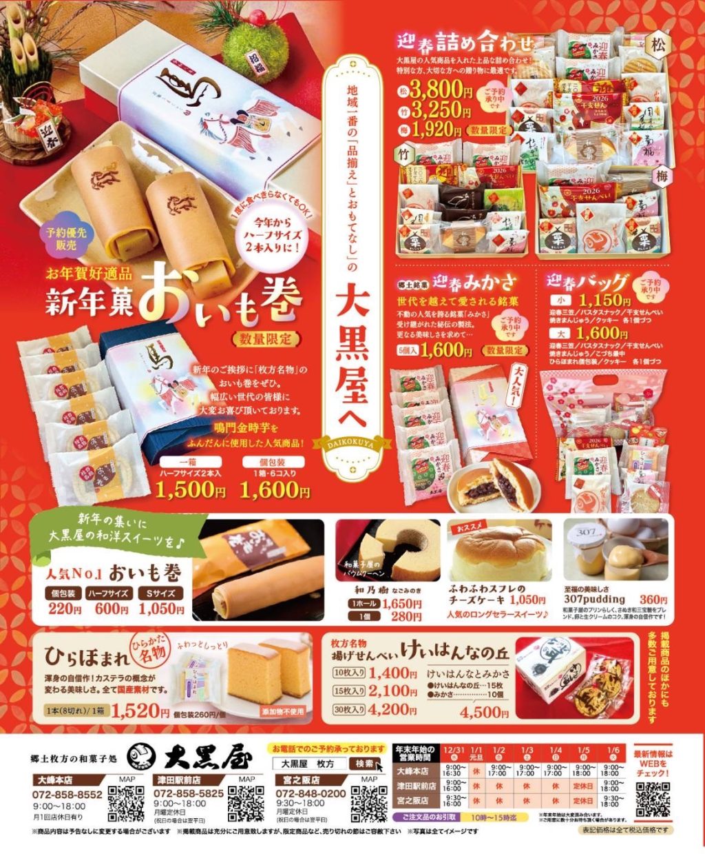 大黒屋では、お年賀、帰省のお土産に最適な【お菓子の詰め合わせ】を種類豊富にご用意しております。