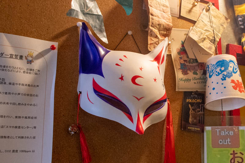 店内にはポパイ商店を浄化した霊話師の不動貞尊さんのお面が。
