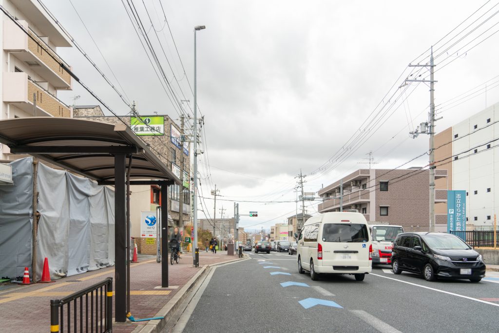 道を挟んだ目の前には「市立ひらかた病院」がある位置。
