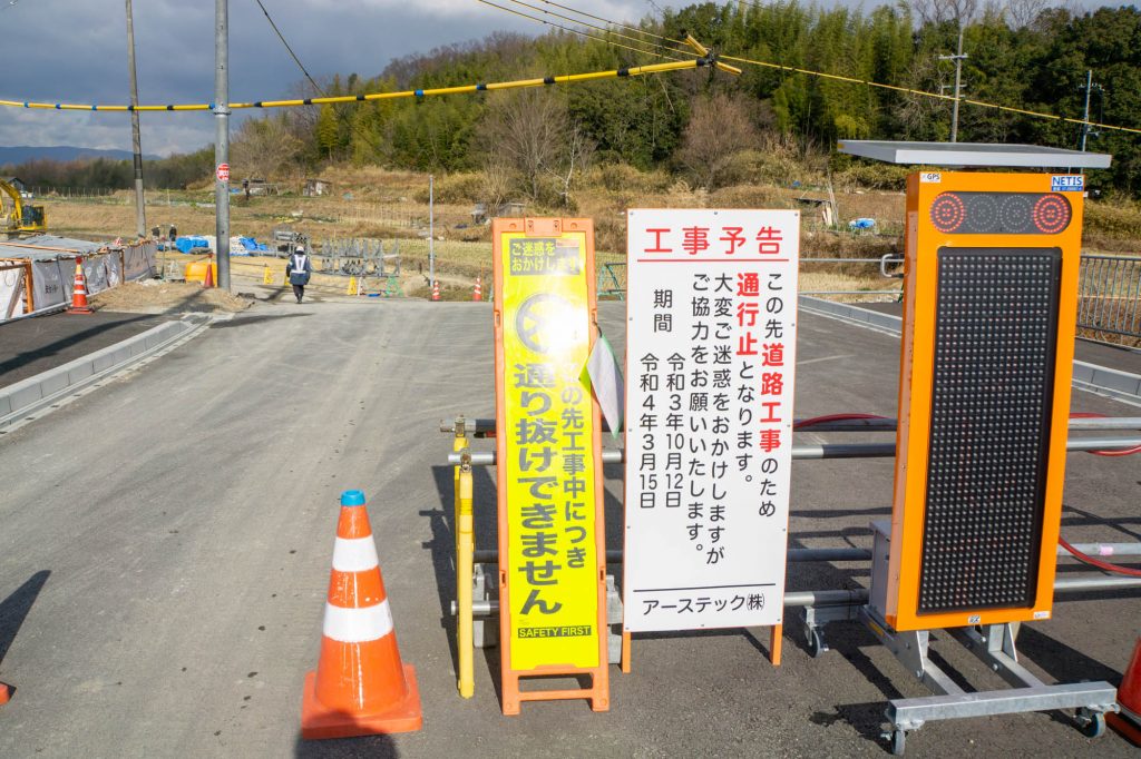 こちらは杉側。現在、道路整備工事を行っているとのことで、通り抜けができなくなっています。