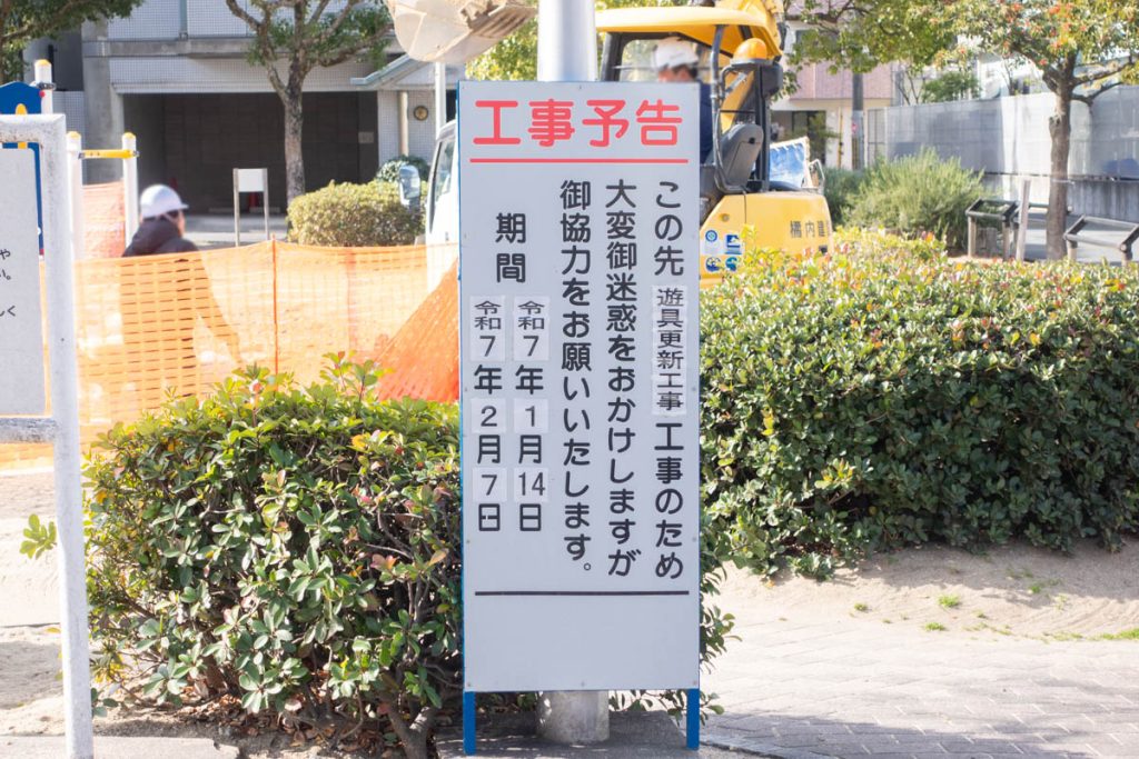 上記をみてみると、遊具更新のため1月14日から2月7日まで工事が行われることが記載されています。