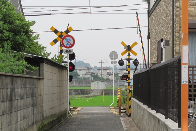民家の脇道にいきなり踏切が!こんな踏切珍しくないですか?・・・・・・そうでもなかったらすいません。