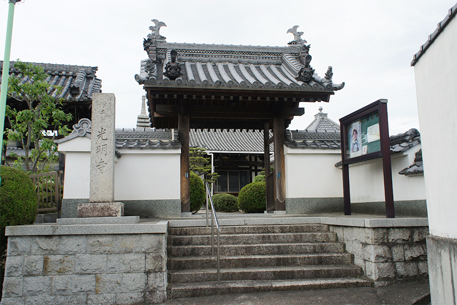 時代は江戸時代、学校でも習う「寛政の改革」が行なわれた後ぐらいです。江戸で浮世絵の写楽(→Wikipedia)が活動したのも寛政6~7年の10ヶ月間。その頃村野では百姓のリーダー的役割である「庄屋」を決めるので揉めてたようです。揉めることになった背景には村内での社会階級的な対立があったのだとか。最終的に村野の光明寺・観音寺が百姓・役人の間に入って話をまとめたそうなんですが、寺院というのはそういう役割もしていたんですね。上の写真は今も村野にある光明寺。観音寺のほうは明治の廃仏毀釈で廃寺となっています。