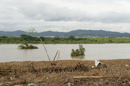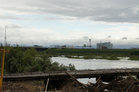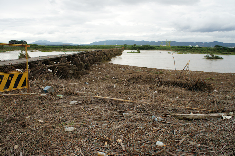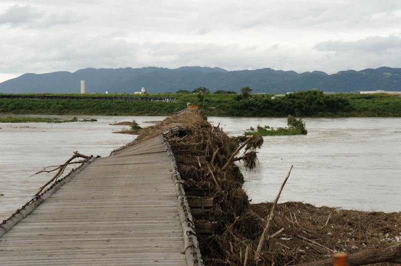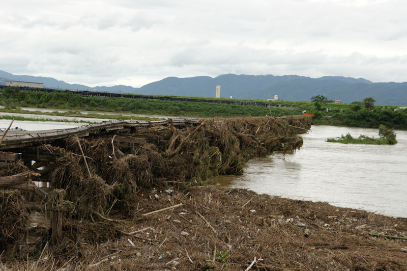 けっこう大きな木までひっかかってます。向こうの方の橋は完全に落ちちゃってますね。