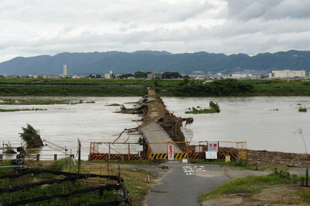 時代劇の撮影に使われたりすることで有名な八幡の「流れ橋」が台風で流れちゃってます。