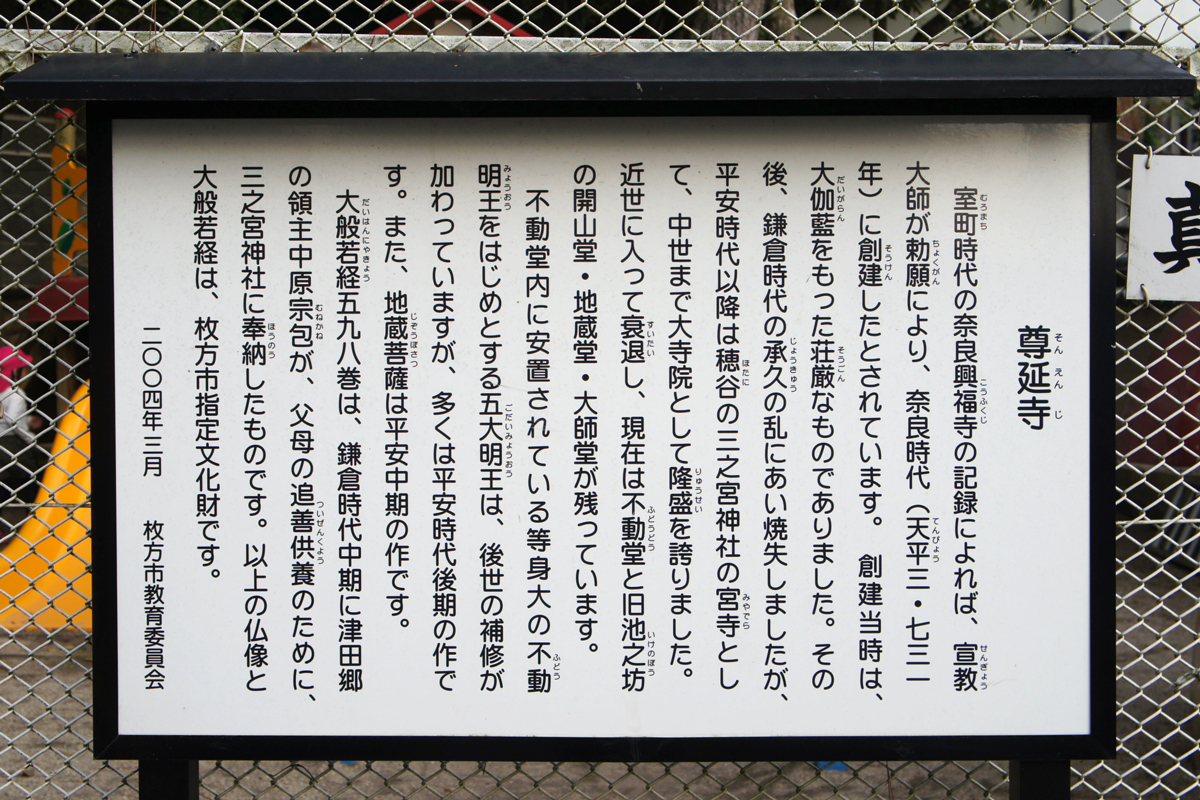 そこで現在の生駒市高山から穂谷・尊延寺・長尾を通って京都へ戻る「高山越」をすることにし、最初は興福寺の人がお供をして尊延寺まで行き、そこで一条家のお迎えにバトンタッチして京都へと戻ったのだそうな。