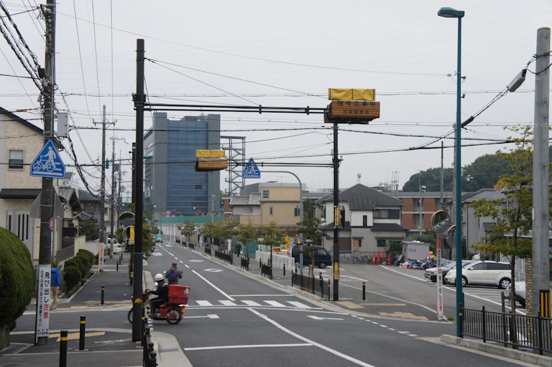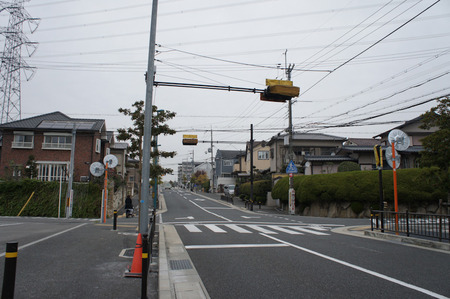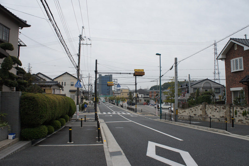 船橋のほうから国道1号線のミドリのある交差点へ出る道です。道路の名前は「楠葉中宮線」ですが、中宮を通ってないのでちょっとピンと来ませんね。もうちょっと具体的にして「船橋養父宇山片鉾車塚甲斐田線」でもいいのでは(長い)。