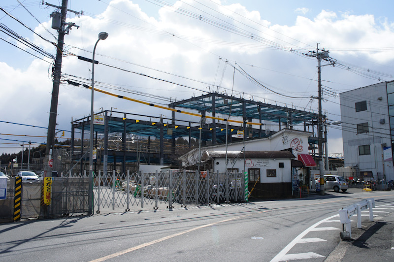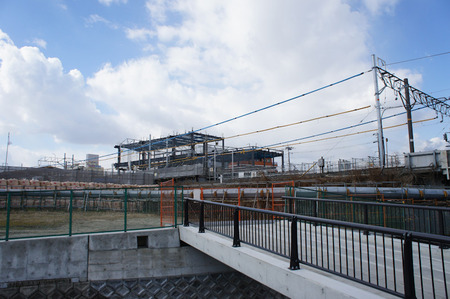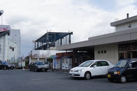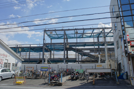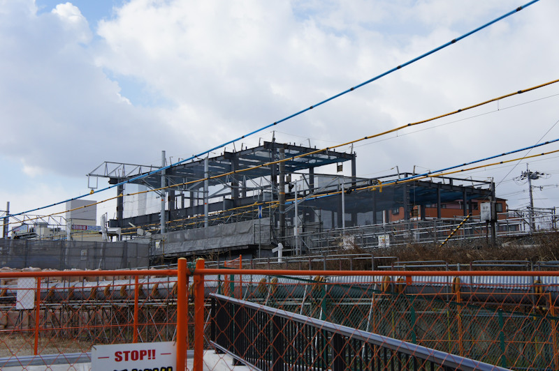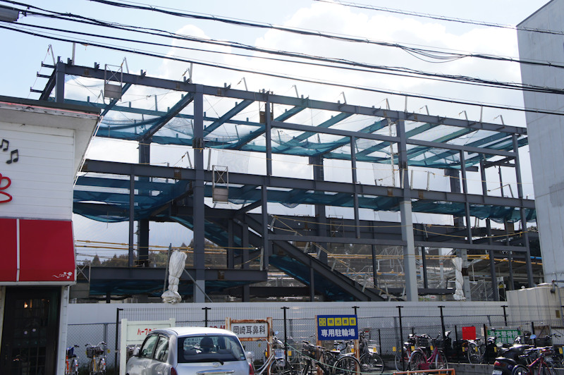 長尾駅は現在橋上化すべくリニューアル工事中ですが、もう新駅舎の鉄骨が見えてきました。