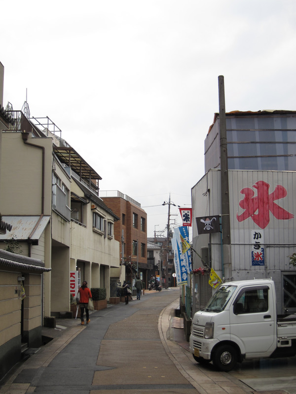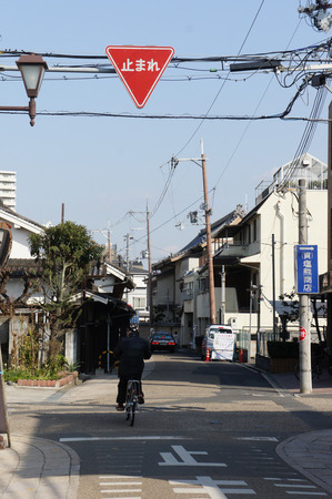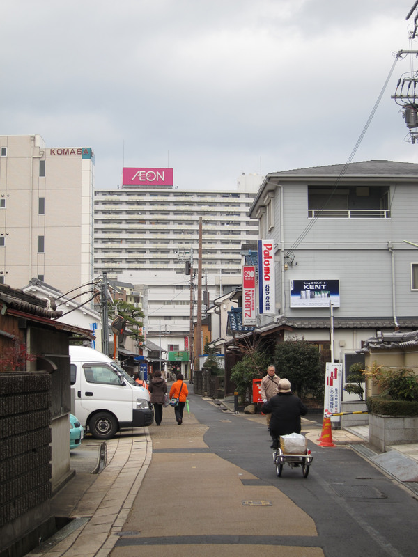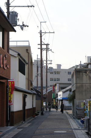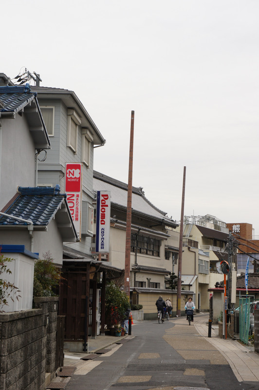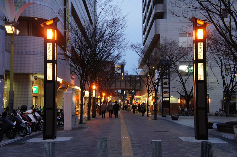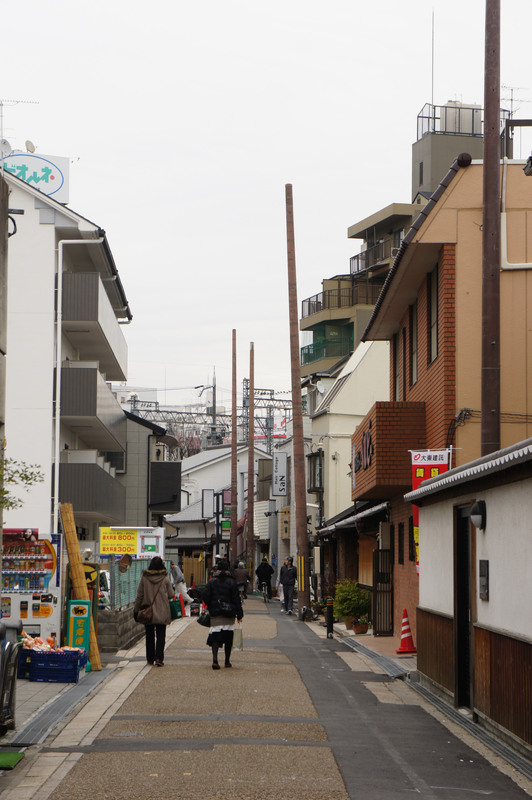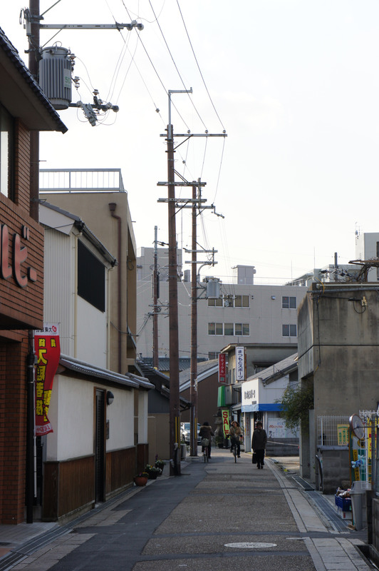 ビオルネから枚方公園方面へちょっと進んだあたり。まだ電柱も電線もあります。