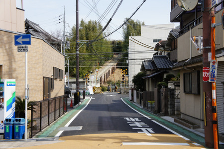 この道は新たに一方通行になります。写真でいうと奥から手前への一方通行。