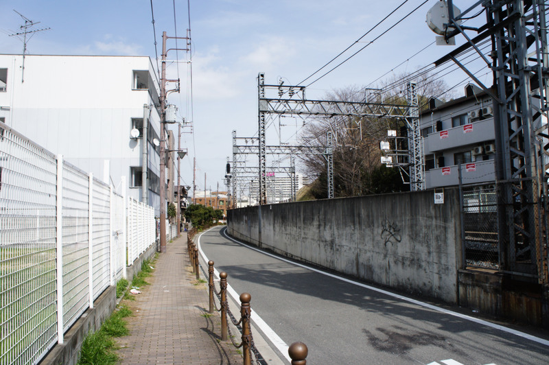 あっちが枚方市駅方面。一方通行なので、車の場合は向こうからこっちに通行してくることになります。