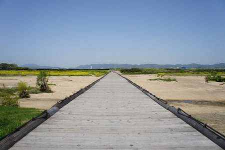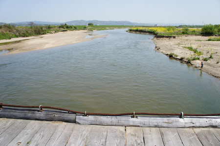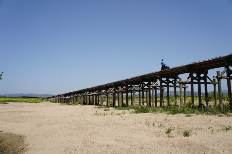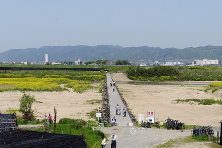 去年9月の台風で橋桁が流れてしまっていた八幡の「流れ橋」が復活してます。