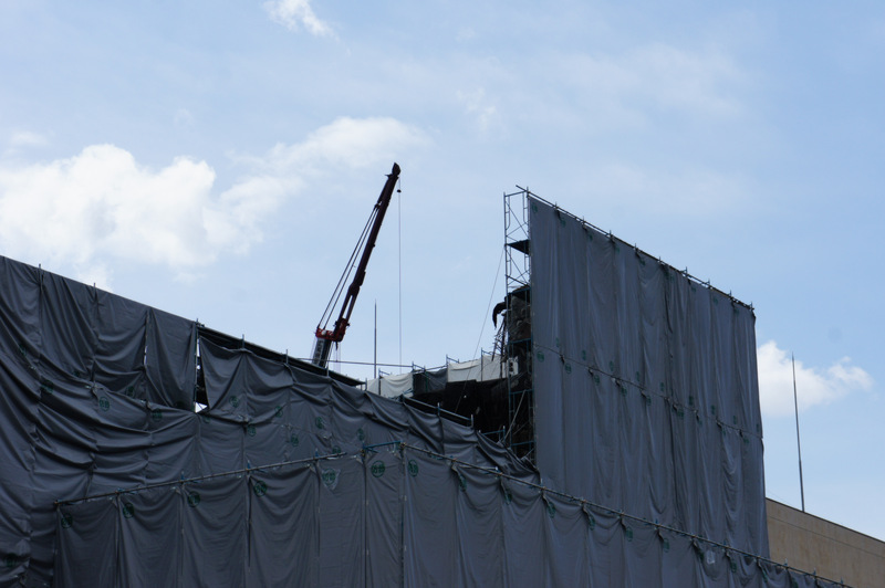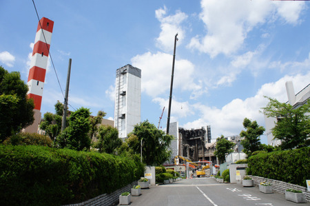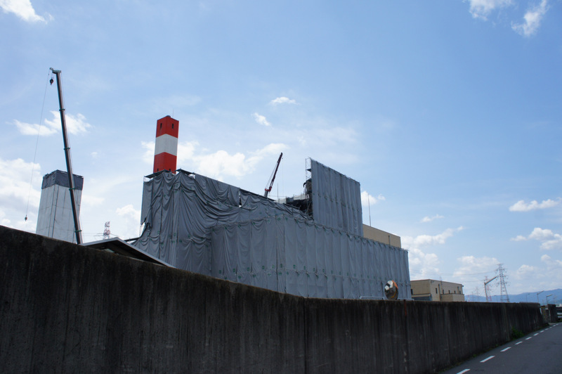 クレーンの左にあるのが煙突。もう囲われてて見えないですがリンク先では古くなった煙突の写真が見れますよ。