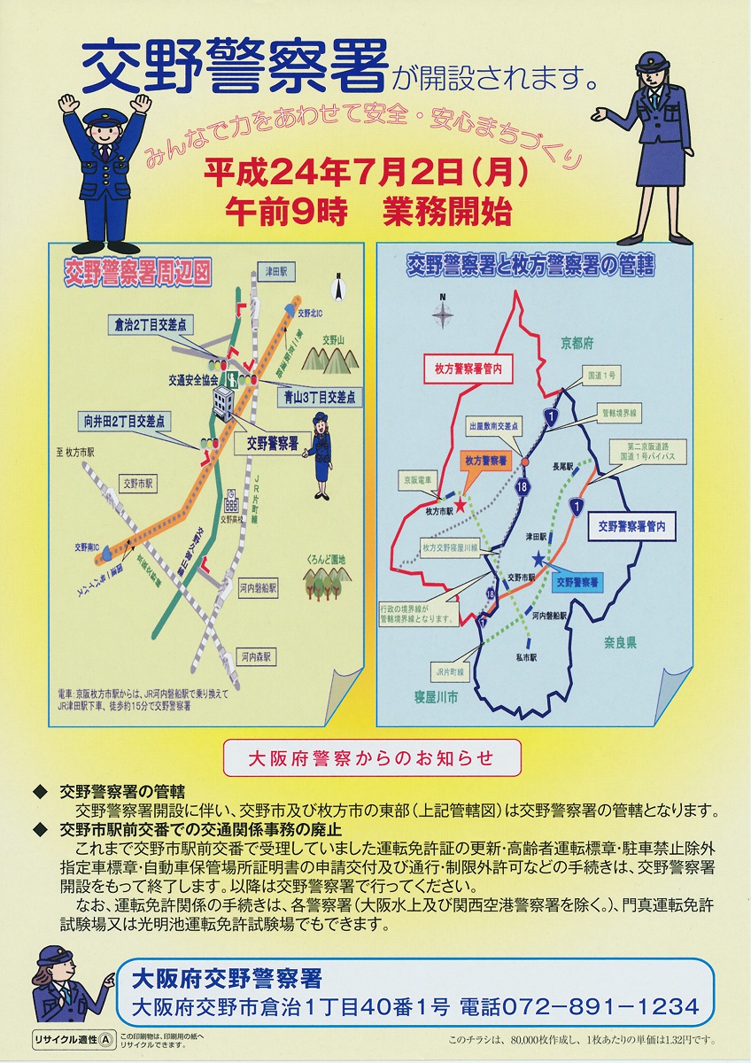 ・交野警察署開設準備室からのお知らせ 大阪府警察