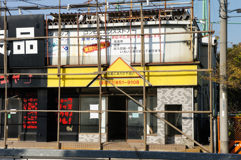 これら全部取り壊すみたいです。いただいたコメントによると隣のオートバックスが来年1月27日で閉店建て替えするそうなので、敷地がこちらまで拡張されそうな感じです。