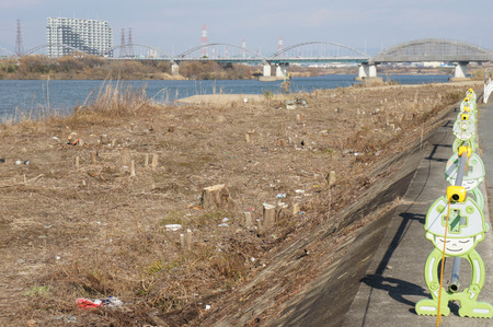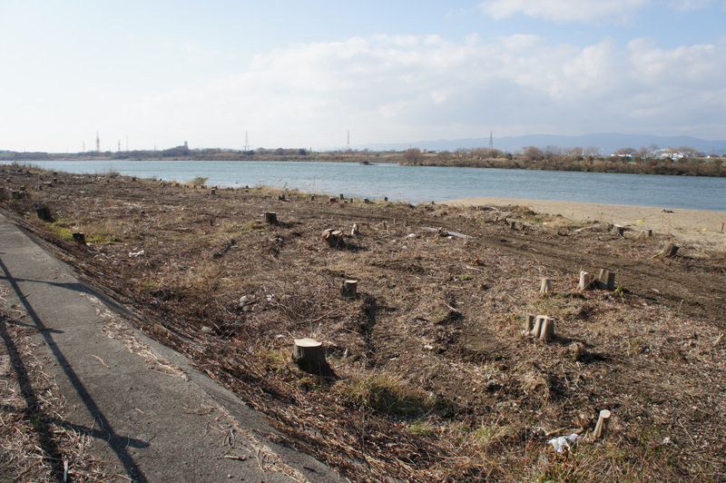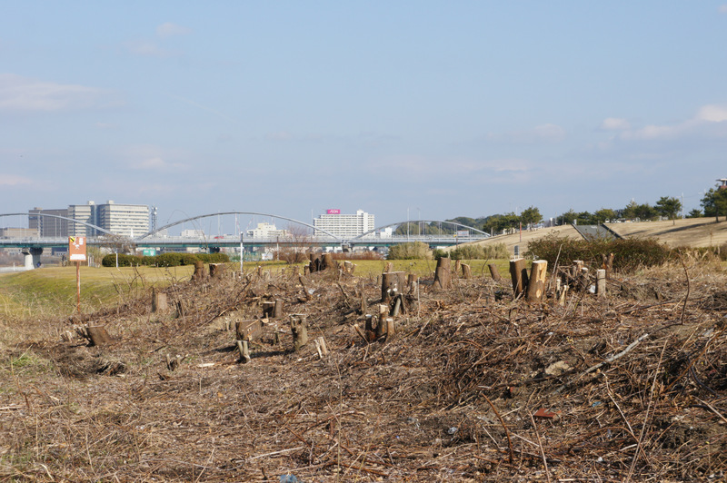 淀川河川敷にたくさん生えてた樹木が伐採されてスッキリしてます。